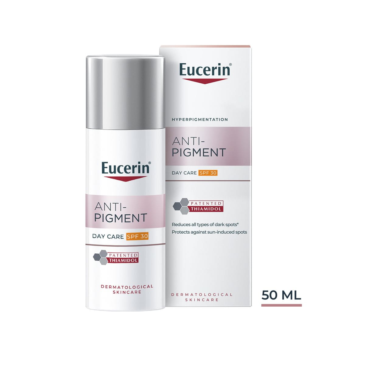 Yes. Eucerin Anti-Pigment Day Care with SPF 30 can help to reduce different types of hyperpigmentation which include age spots (also known as sun spots). And, with SPF 30, it also protects the skin from the sun helping to reduce further sun-induced pigmentation issues. For optimal results, we recommend that you use it in combination with other products in the Eucerin Anti-Pigment range. You can find out more about the different types of hyperpigmentation and what causes them in our Guide on Hyperpigmentation.