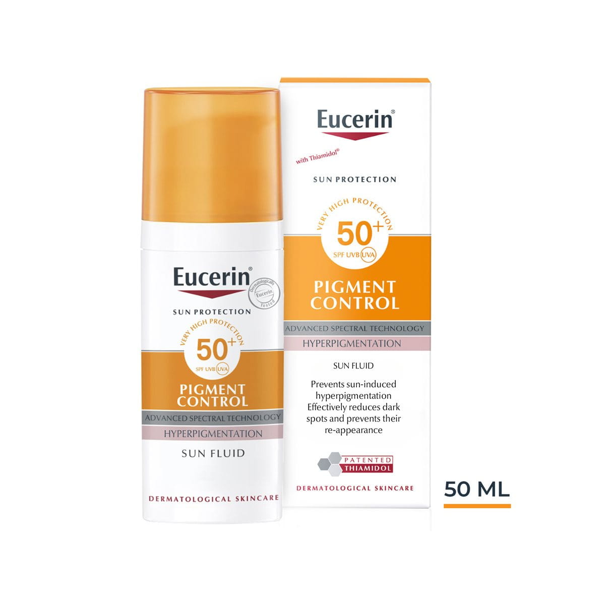 With patented Thiamidol, the Eucerin Sun Pigment Control Fluid SPF 50+ reduces dark spots, prevents re-appearance and ensures a light texture. Dermatologically proven and suitable for all skin types, 97% of users report a more even complexion.